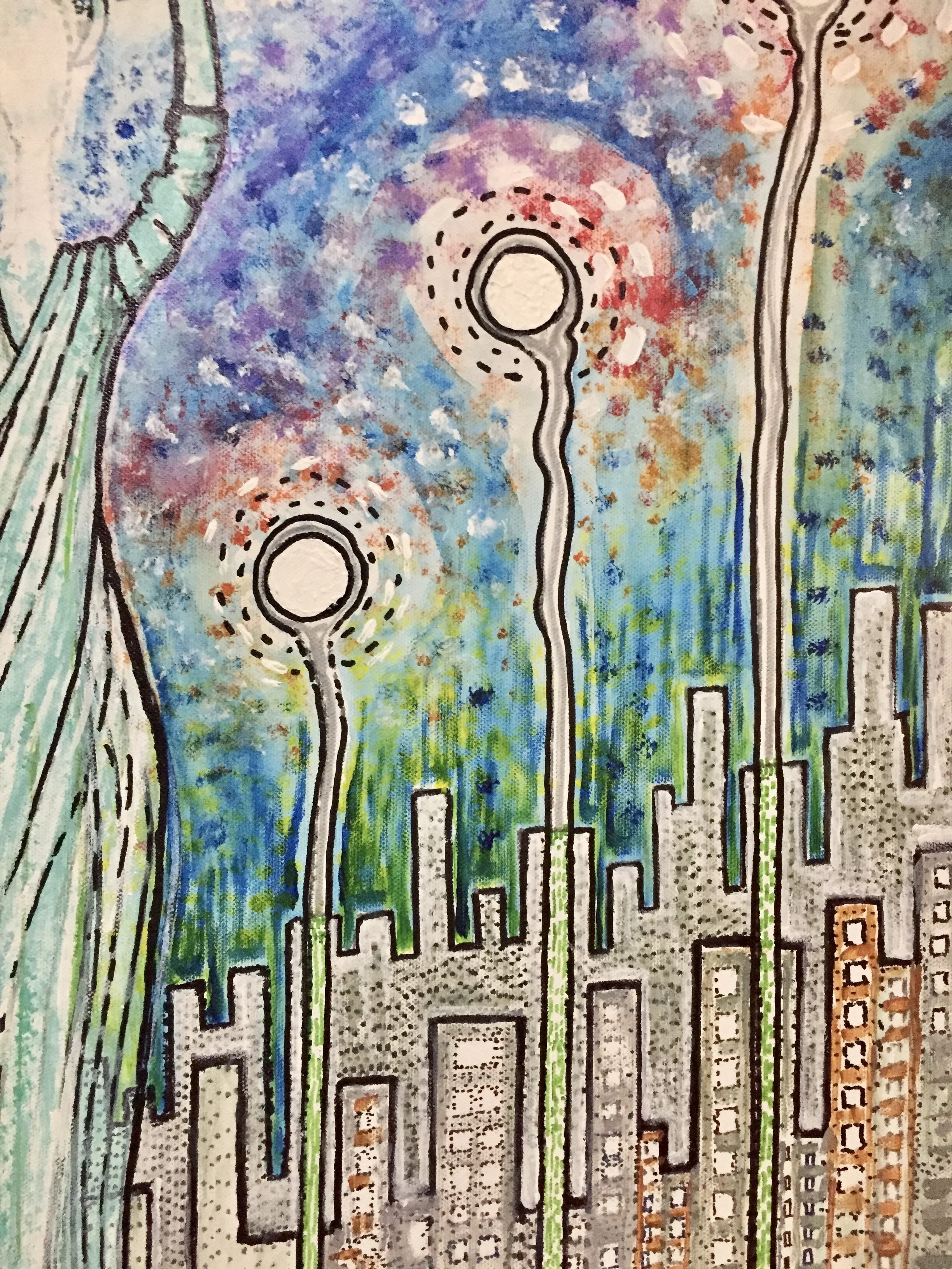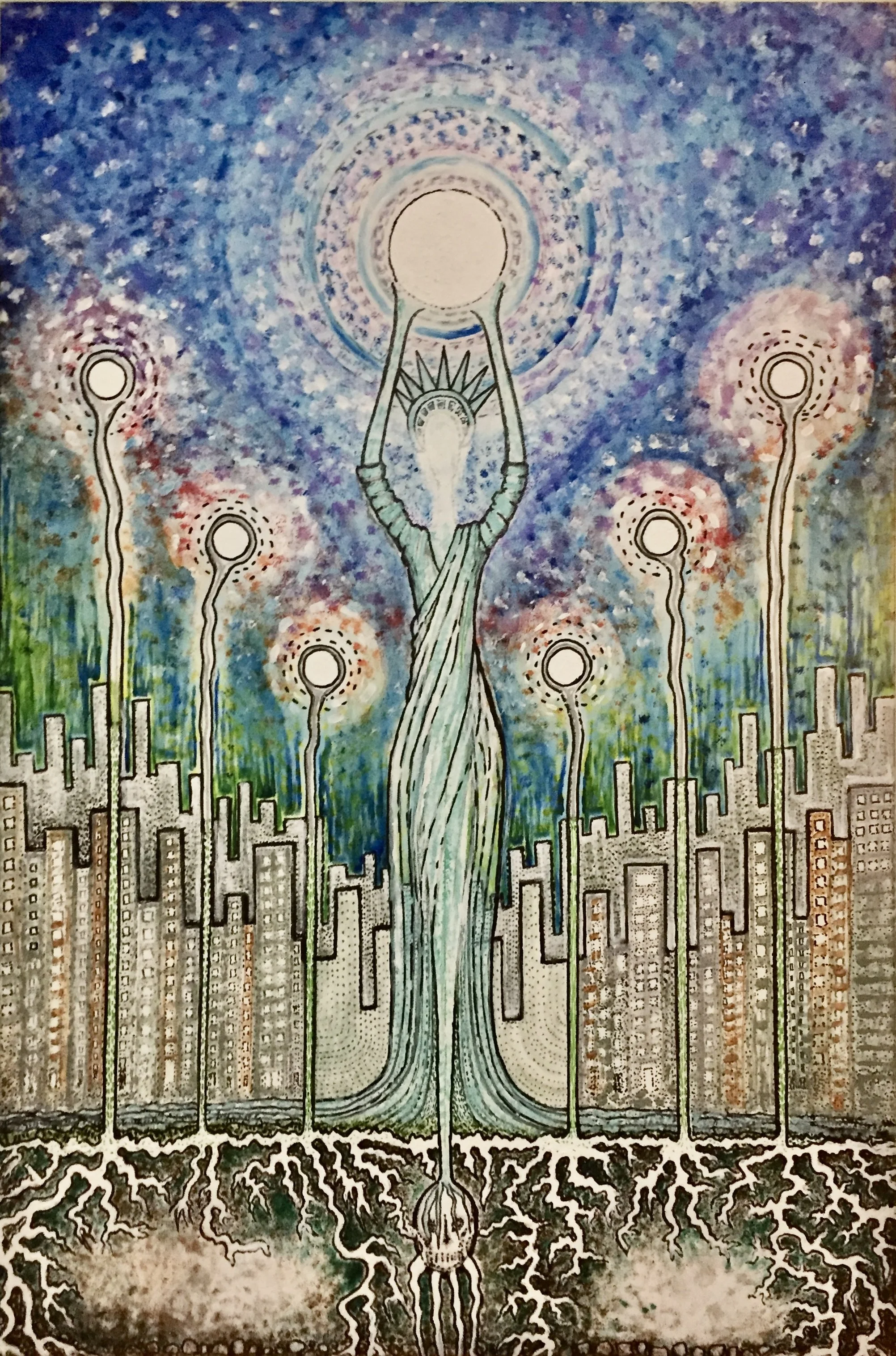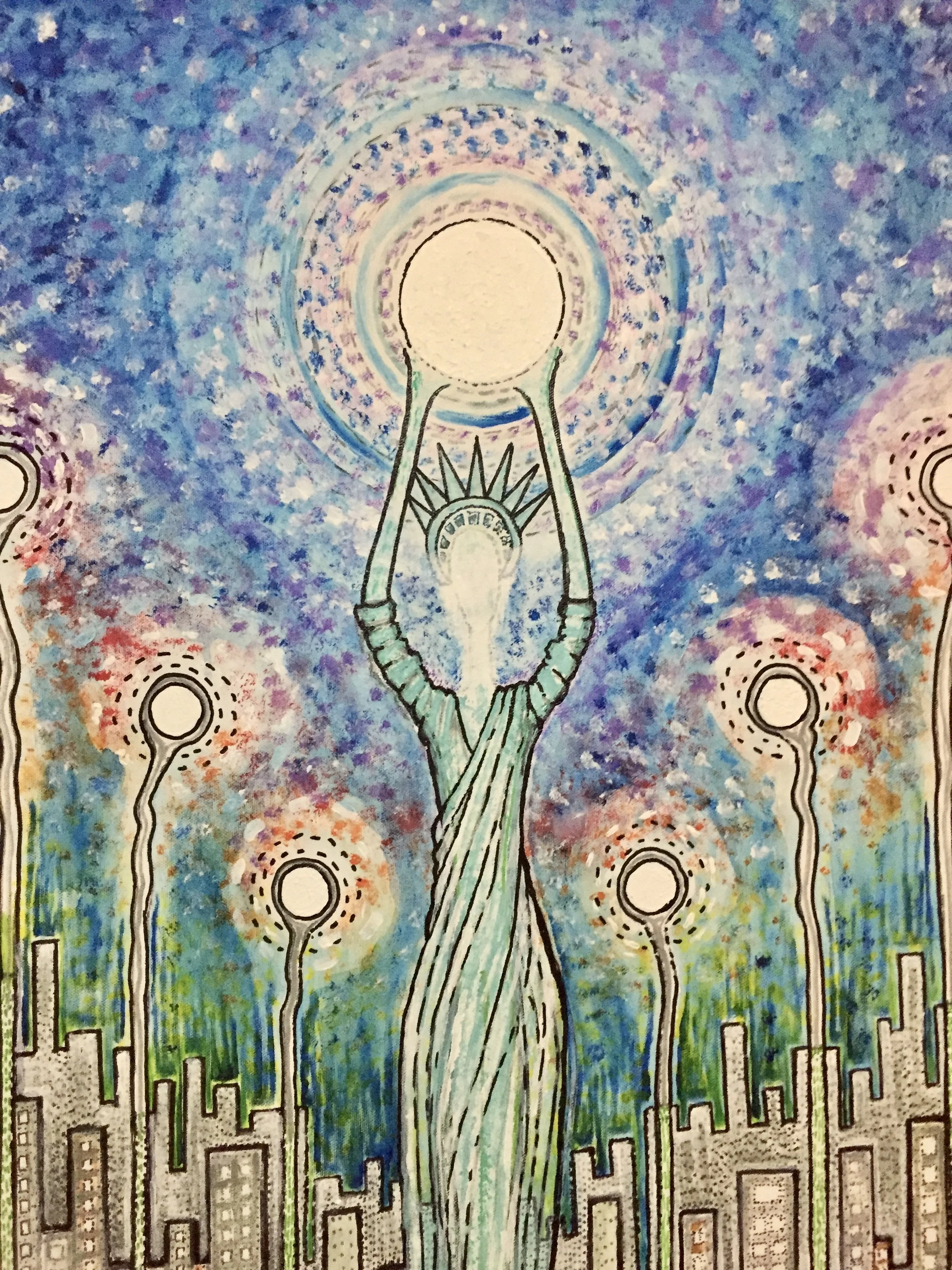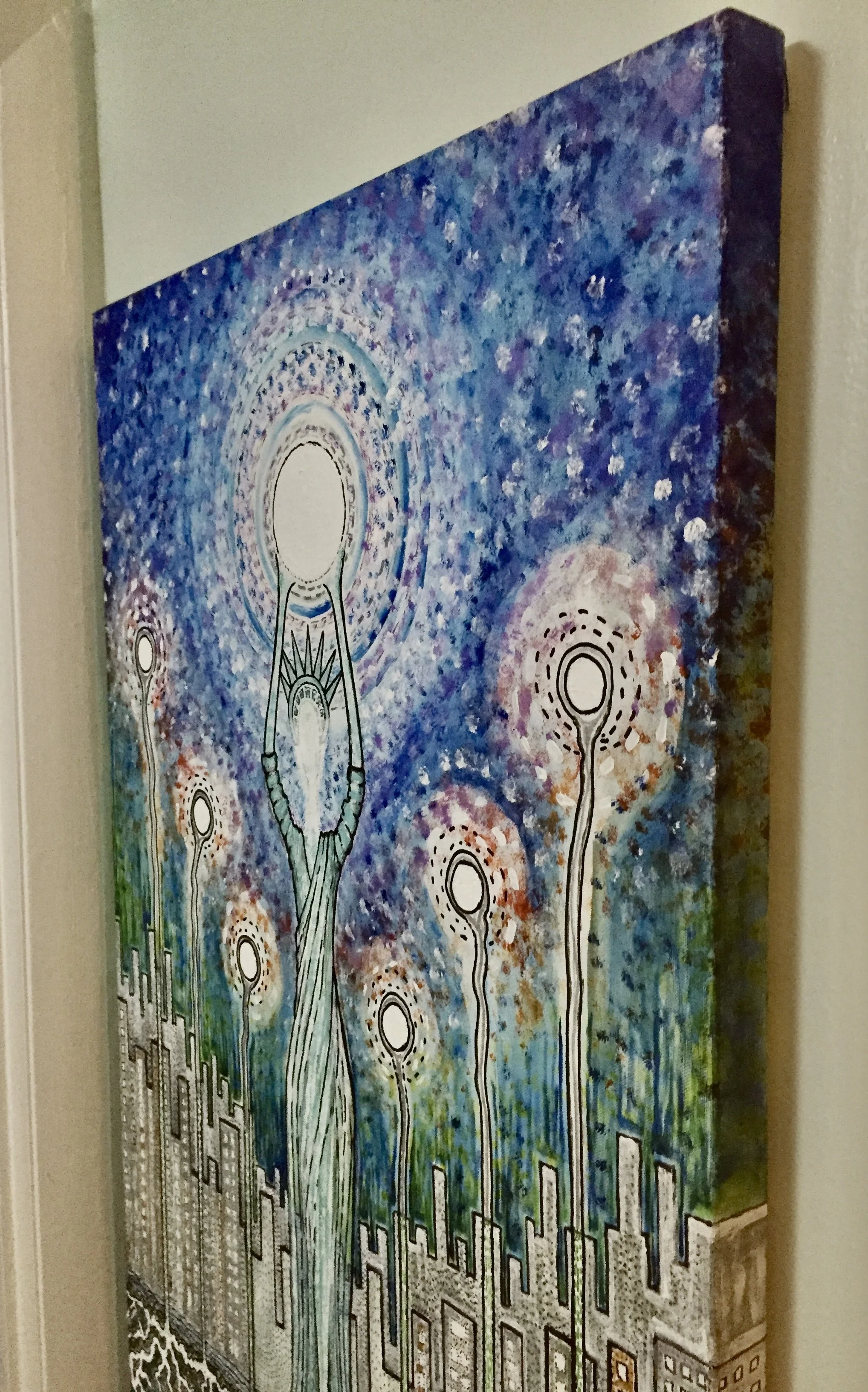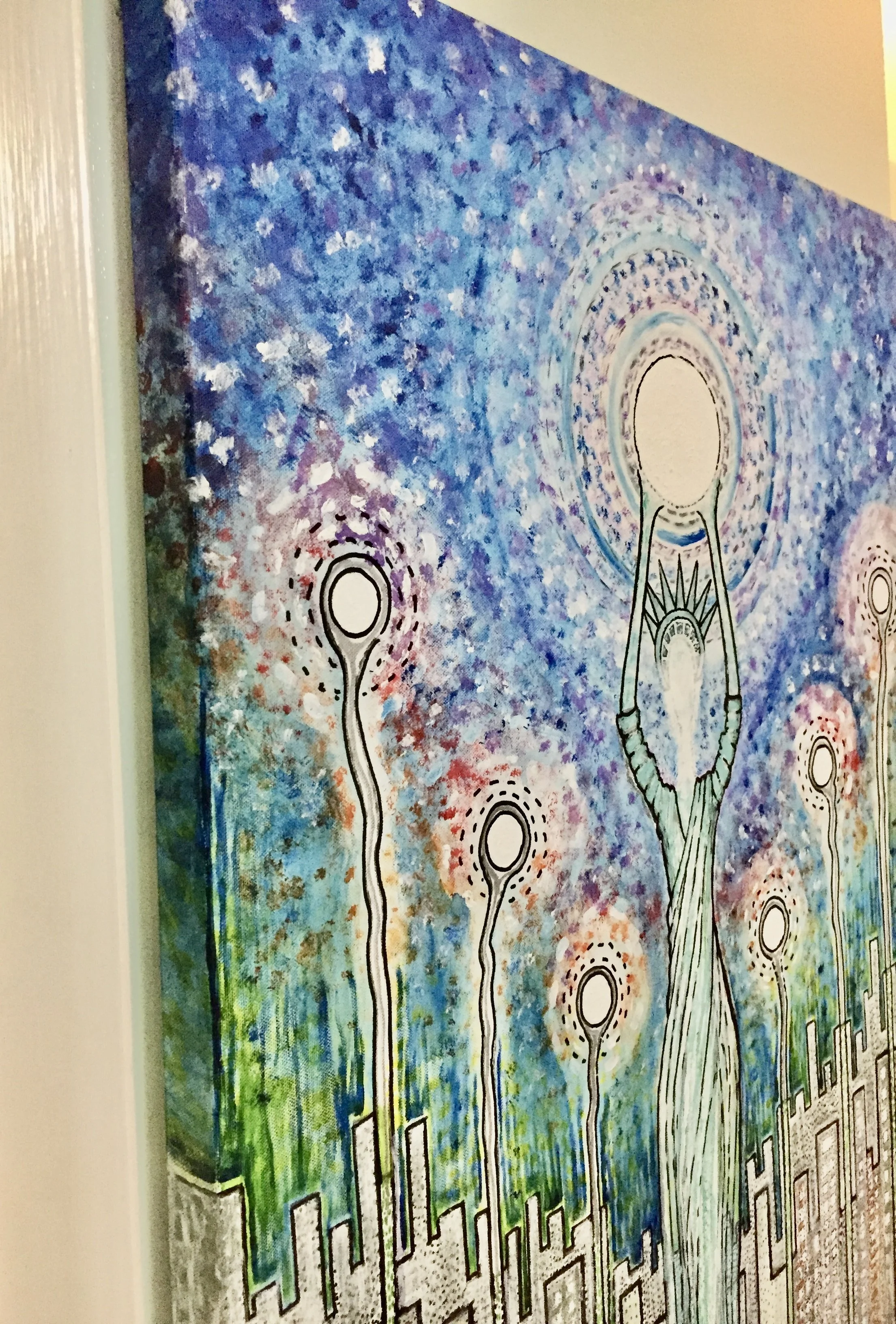Categories: Select a Category paintings Gallery paintings | "birthing a renaissance" $325.00 Add To Cart Added! "by the light of the blue moon glorious she rises" $525.00 Add To Cart Added! "sipping from hope's fountain" $625.00 Add To Cart Added! "celestial murmurations" $350.00 Add To Cart Added! "Mary, Mary (how does your garden grow?)" $325.00 Add To Cart Added! "calling on our better angels" $275.00 Add To Cart Added! "we string our tiny lights together to pierce the darkness" $325.00 Add To Cart Added! "up from our bones the resistance grows" $625.00 Add To Cart Added!